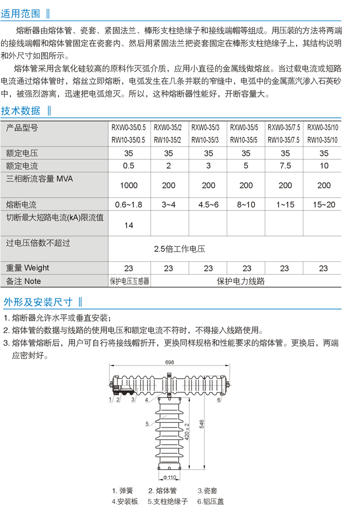 RXW0-35、RW10-35、RW9-35、RXW0-10型戶外高壓限流熔斷器