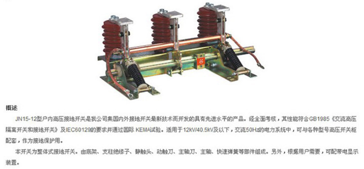 JN15-12 戶內交流高壓接地開關