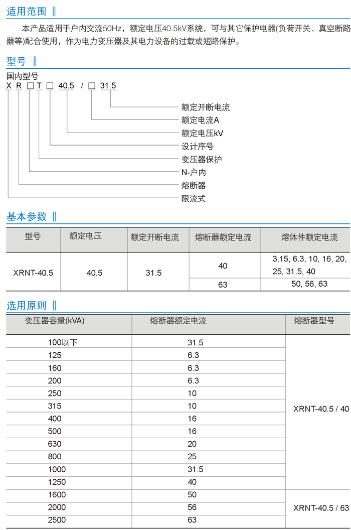 油浸式變壓器過載保護用高壓限流熔斷器
